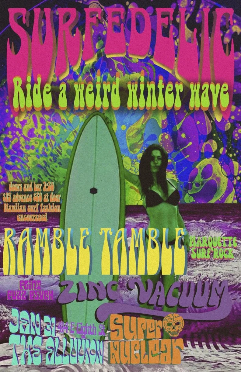 Featuring music from Marquette's Ramble Tamble and an opening set from Flint's Zinc Vacuum. Put on your favorite Hawaiian beach shirt and come surf the waves of this radical psych-surf freak out!