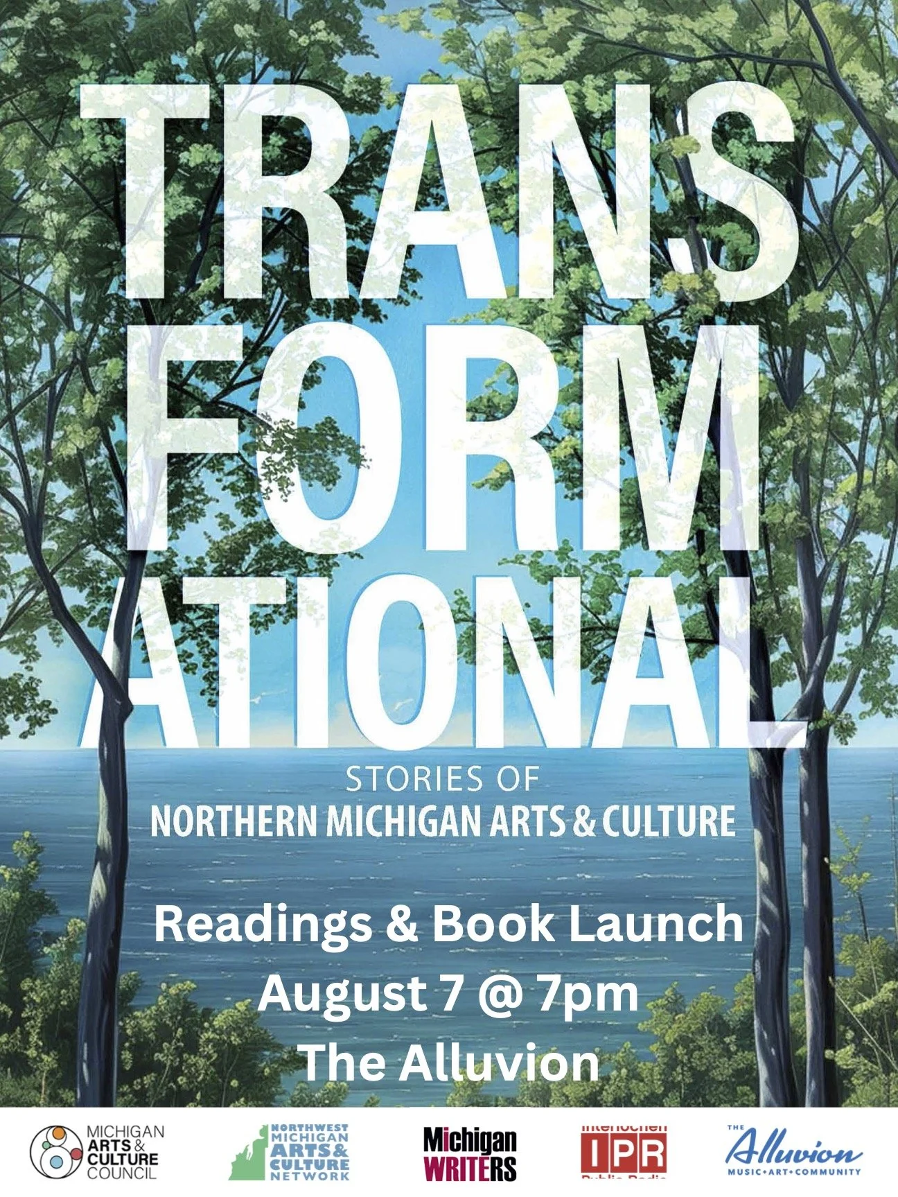 The Alluvion is partnering for the 8/7 event along with Michigan Writers, IPR and the Network. The Transformational project is supported in part by an award from Michigan Arts & Culture Council. For more information, contact arts@nwmiarts.net.